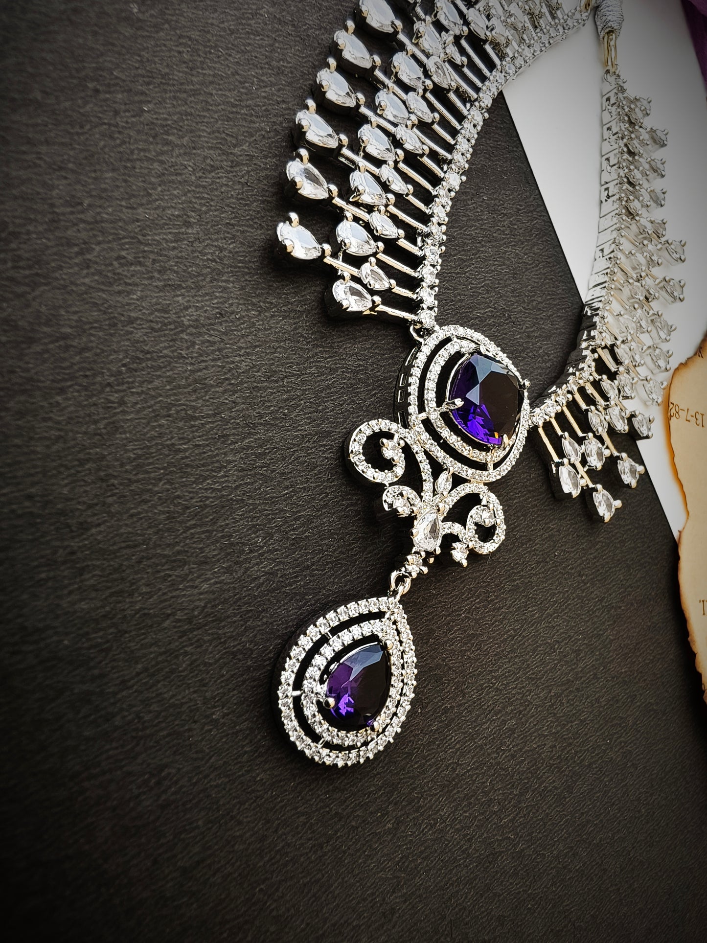 It is purely made by blue diamond with silver nano diamond .It is styling with your weastern outfit.And fancy saree.
