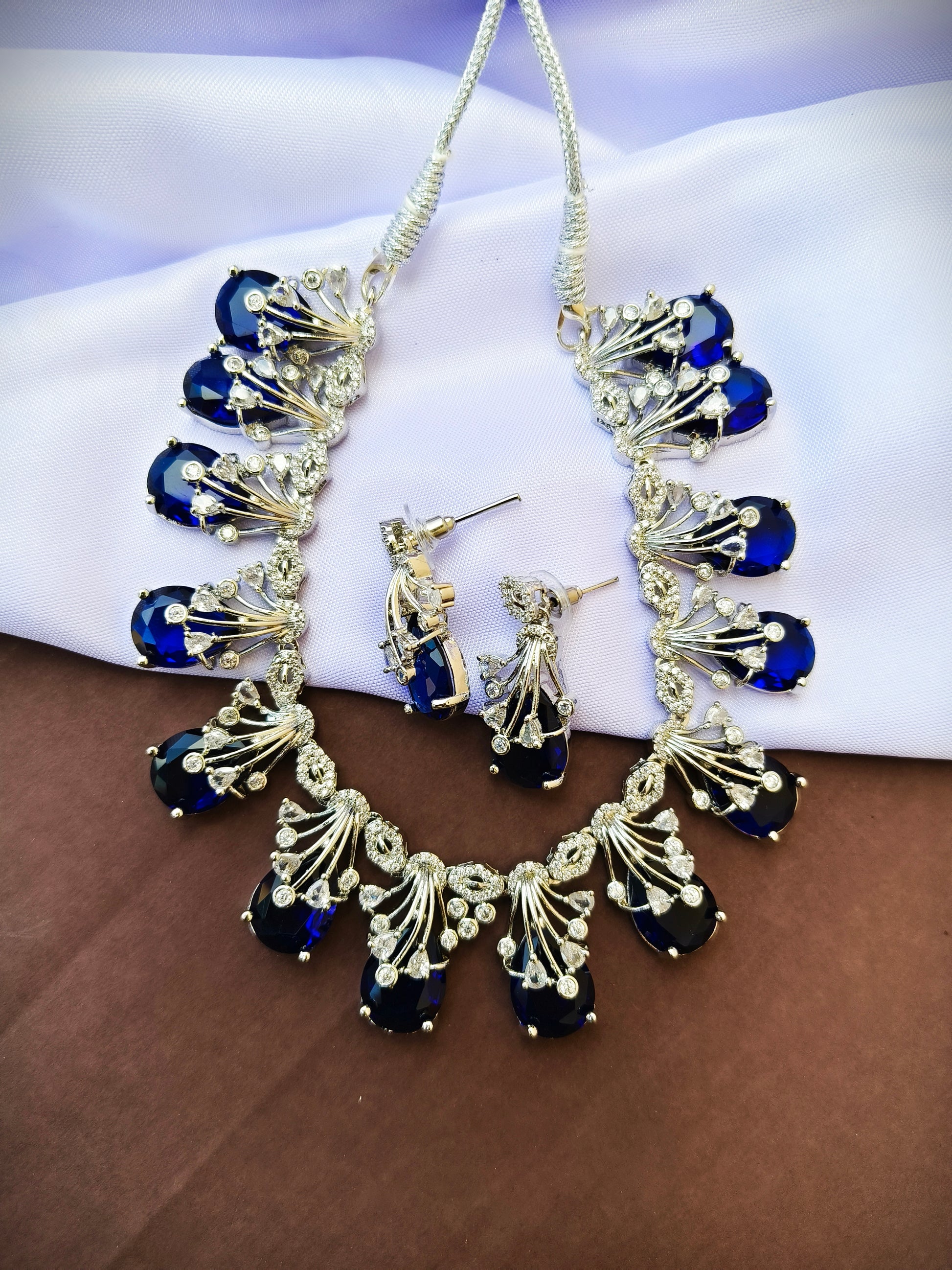 It is purely made by blue diamond with silver nano diamond .It is styling with your weastern outfit.And fancy saree.