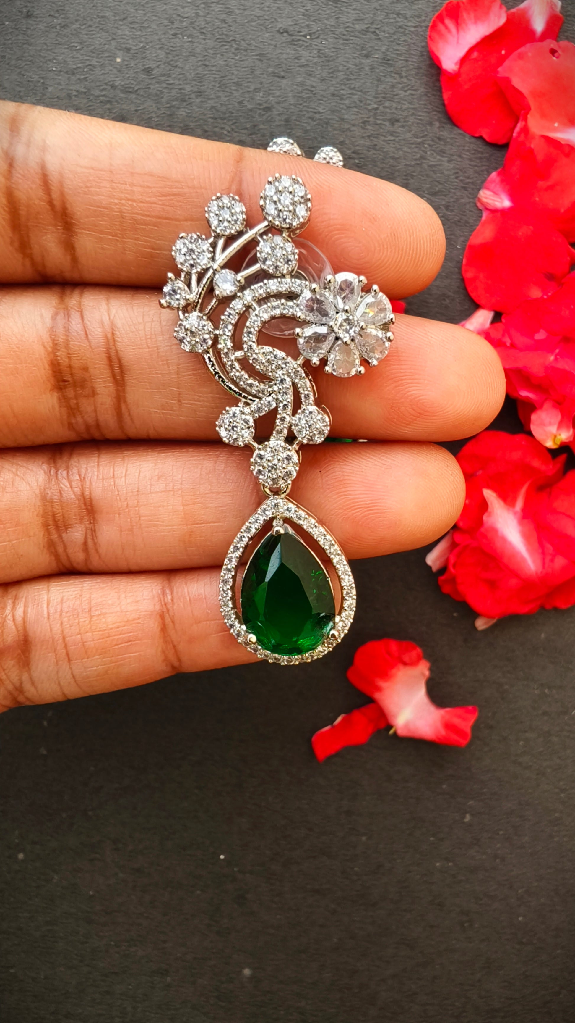 It is purely made by Green stones with silver nano diamond .It is styling with your western outfit.And fancy saree.